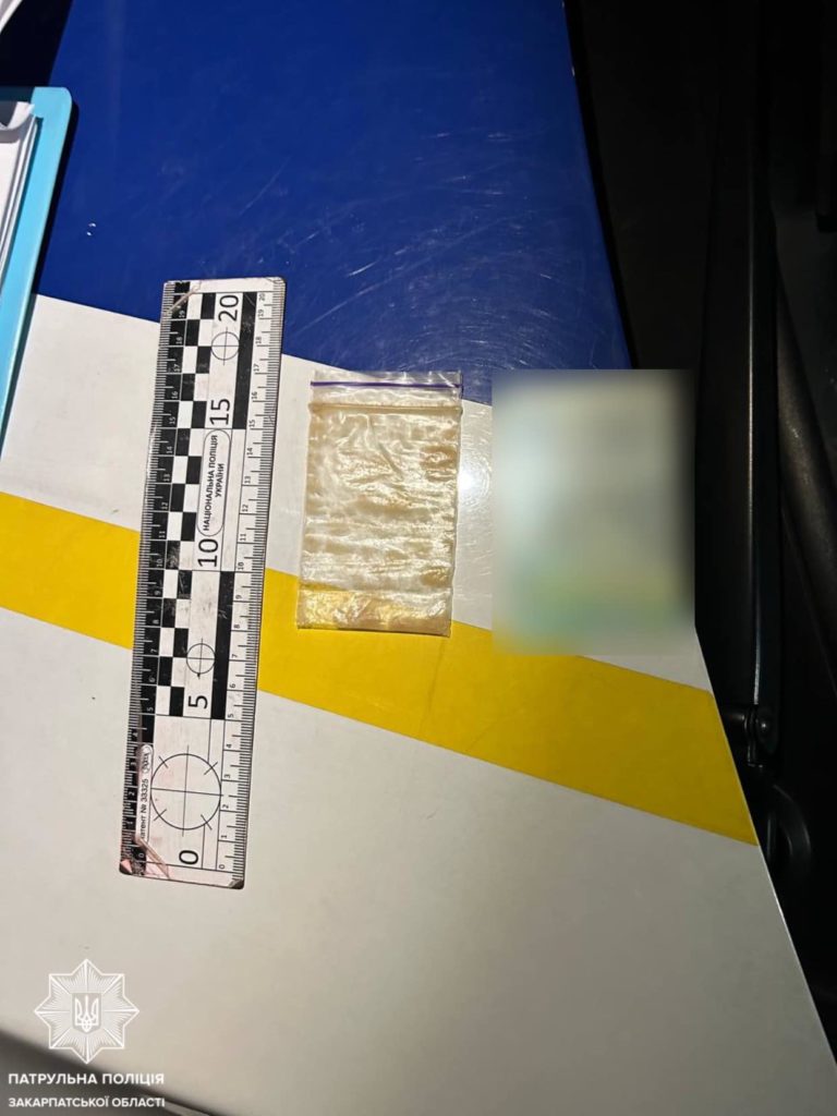 Під час спілкування водій почав нервувати і підозріло поводився. Інспектори спитали про причину його поведінки, але громадянин почав плутатися у поясненнях, тому патрульні вирішили провести поверхневу перевірку. Згодом поліцейські виявили у кишені штанів громадянина zip-пакет, у якому містилась жовта речовина, зовні схожа на наркотичну.