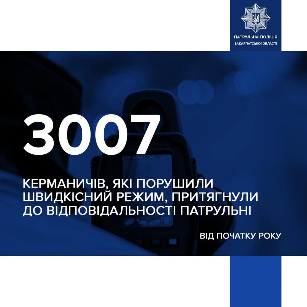 3007 водіїв, які порушили швидкісний режим, притягнули до відповідальності патрульні поліцейські Закарпаття від початку року.