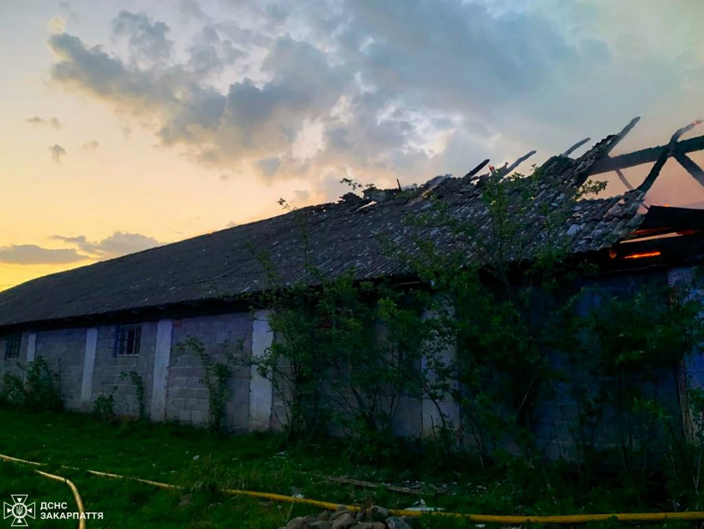 Внаслідок дії вогню знищено частину даху та пошкоджено майно, що зберігалося всередині. До гасіння залучалося 6 рятувальників та 2 одиниці техніки.