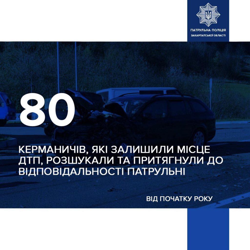 Від початку року патрульні поліцейські Закарпатської області розшукали 80 водіїв, які покинули місце ДТП.