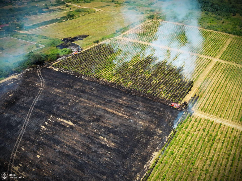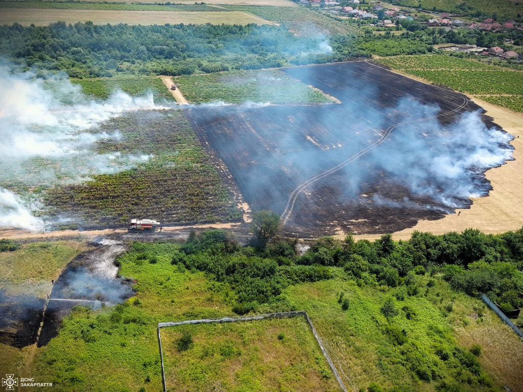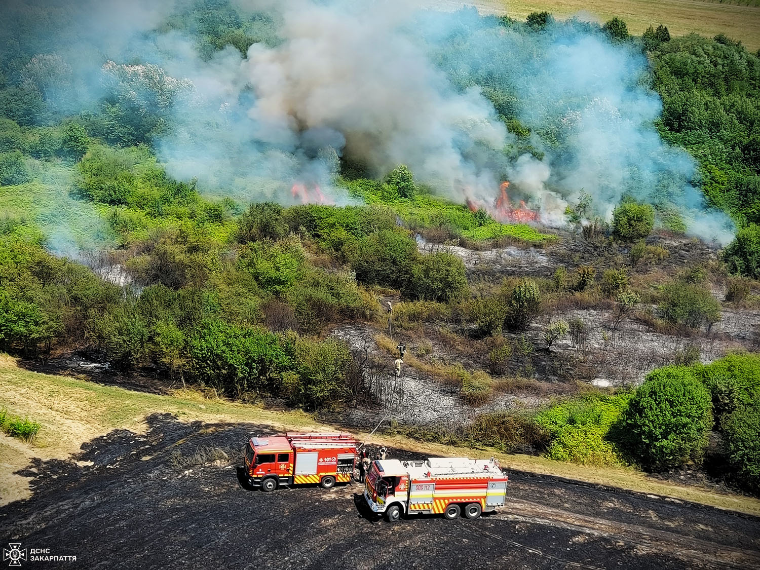 Лише за 7 липня на Закарпатті зафіксовано 12 пожеж у природних екосистемах. Найбільша — у мікрорайоні Горяни, що в Ужгороді. Там горіла суха трава та виноградники на відкритій території.