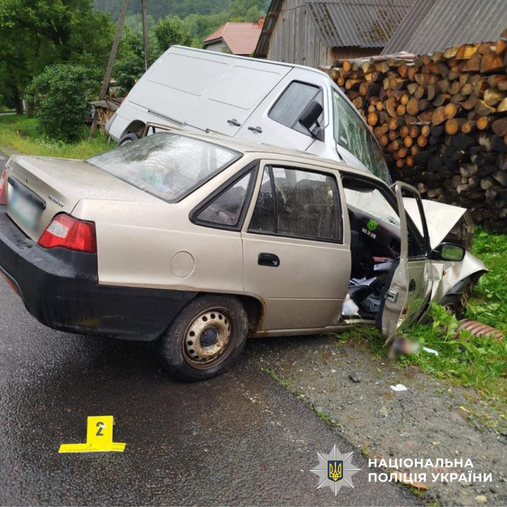 Аварія трапилася за участі «Mercedes Sprinter» та «Daewoo Nexia». Як з’ясували поліцейські, 62-річний водій мікроавтобуса, мешканець села Середнє Водяне, рухався в напрямку міста Рахів. Чоловік проявив неуважність, виїхав на зустрічну смугу та допустив зіткнення з зустрічним авто, яким керувала 61-річна мешканка села Ділове Рахівського району. Внаслідок аварії водійка легковика померла на місці події. В її автомобілі також перебували троє пасажирів, віком 32, 14 та 12 років. Їх із травмами різного ступеню тяжкості госпіталізували до лікарні.