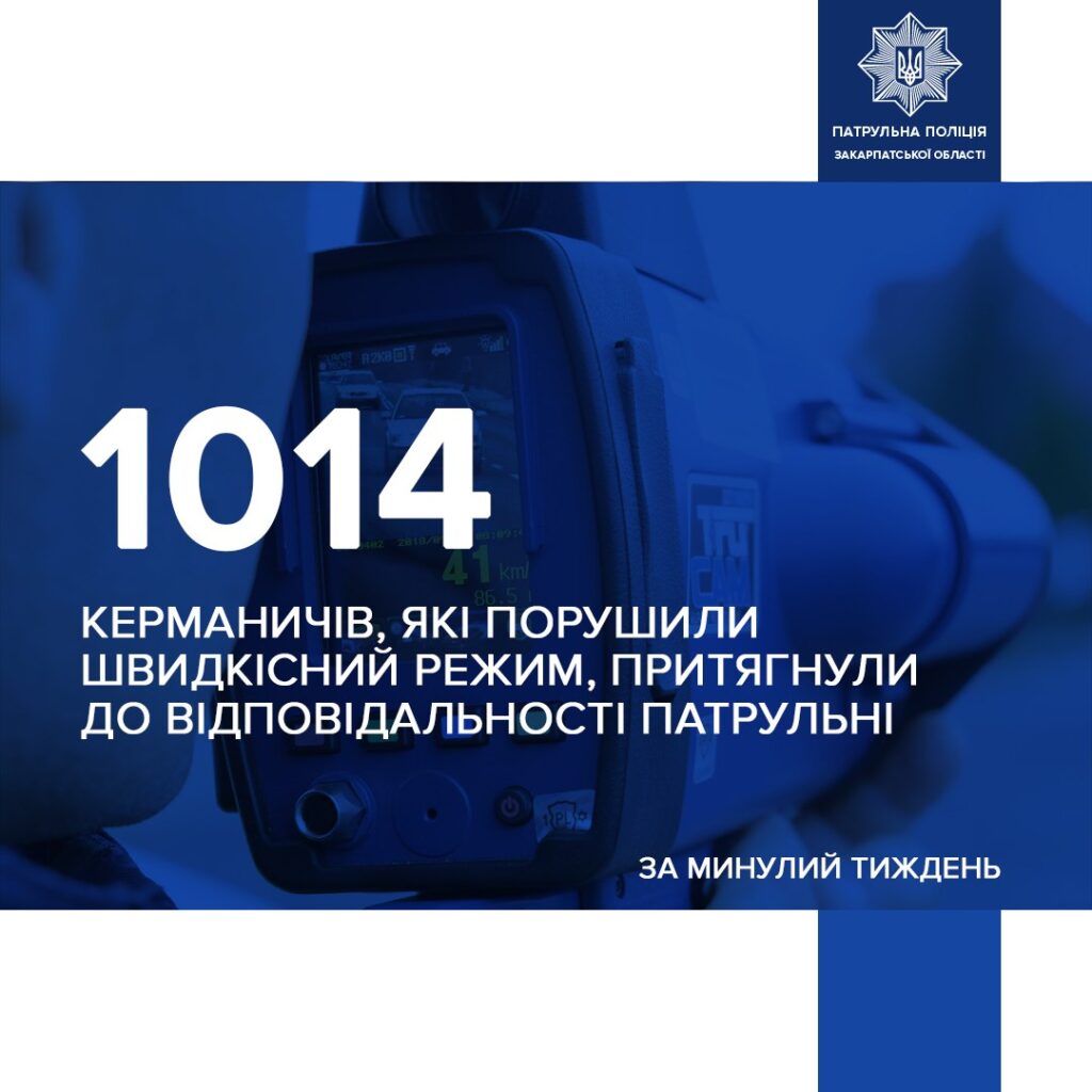 За минулий тиждень на Закарпатті патрульні притягнули до відповідальності 1014 водіїв, які порушили швидкісний режим.