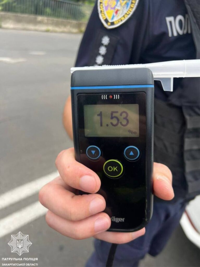 Спілкуючись з винуватцем події, патрульні помітили ознаки алкогольного сп’яніння. Водій погодився на тест, результат якого становив 1,53 ‰.