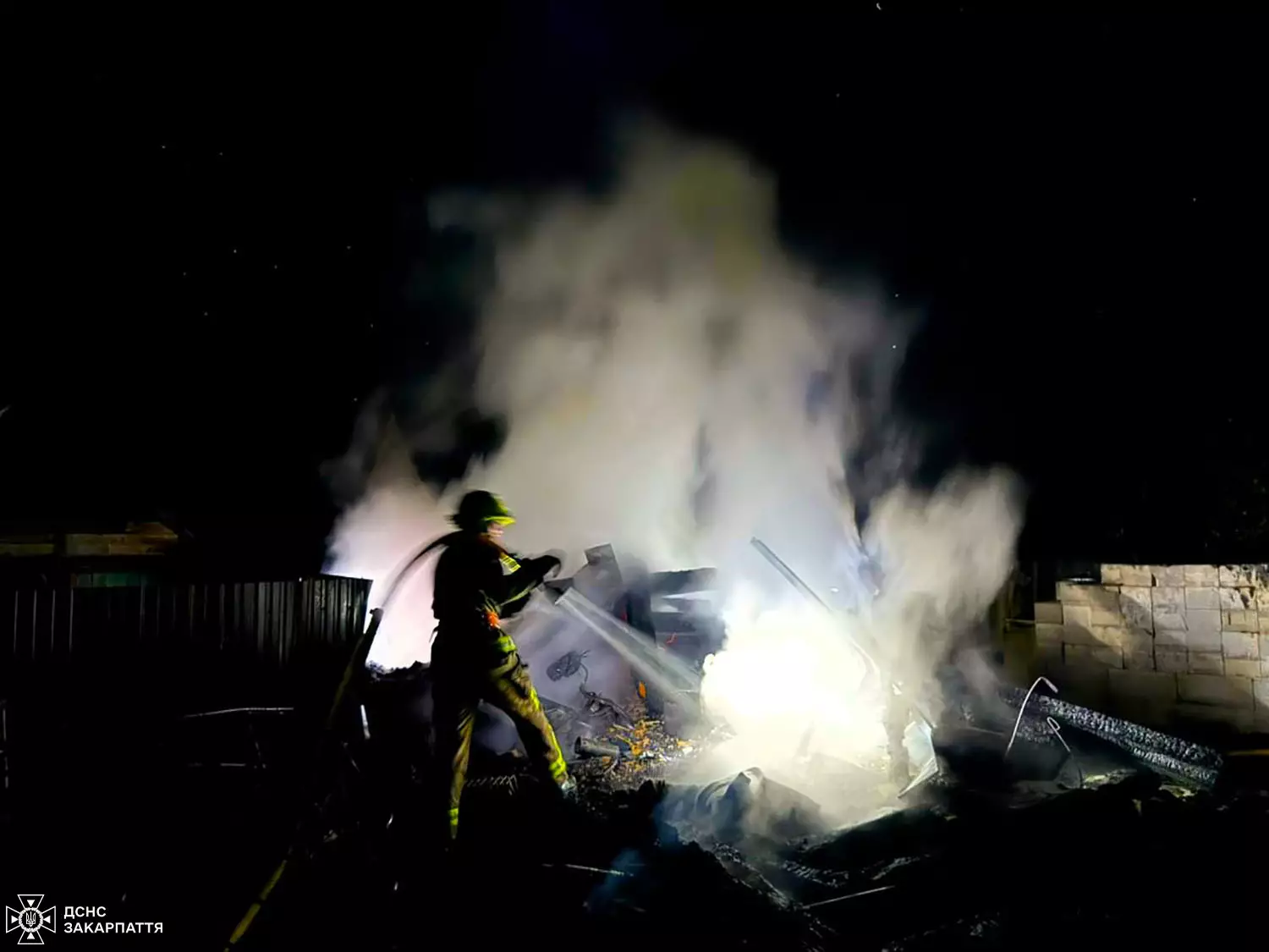 На місце прибули бійці ДСНС із Мукачевого. Вогнеборці оперативно локалізували пожежу на площі близько 20 кв. м, не допустивши поширення вогню на житловий будинок та літню кухню. Остаточна ліквідація тривала до 00:12.