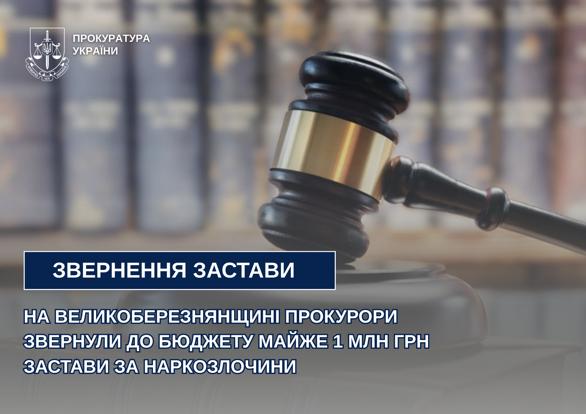 За клопотаннями прокурорів Великоберезнянського відділу Ужгородської окружної прокуратури в дохід держави звернуто 983 тис. грн застави з чотирьох підозрюваних у наркозлочинах.
