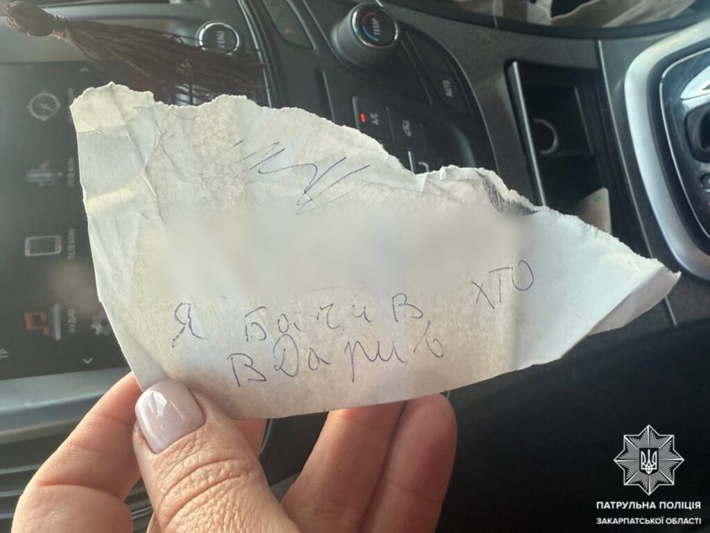 Прибувши за вказаною адресою, інспектори встановили заявницю, яка повідомила, що припаркувала автомобіль Opel, а коли повернулася — побачила на лобовому склі записку з номером телефону.