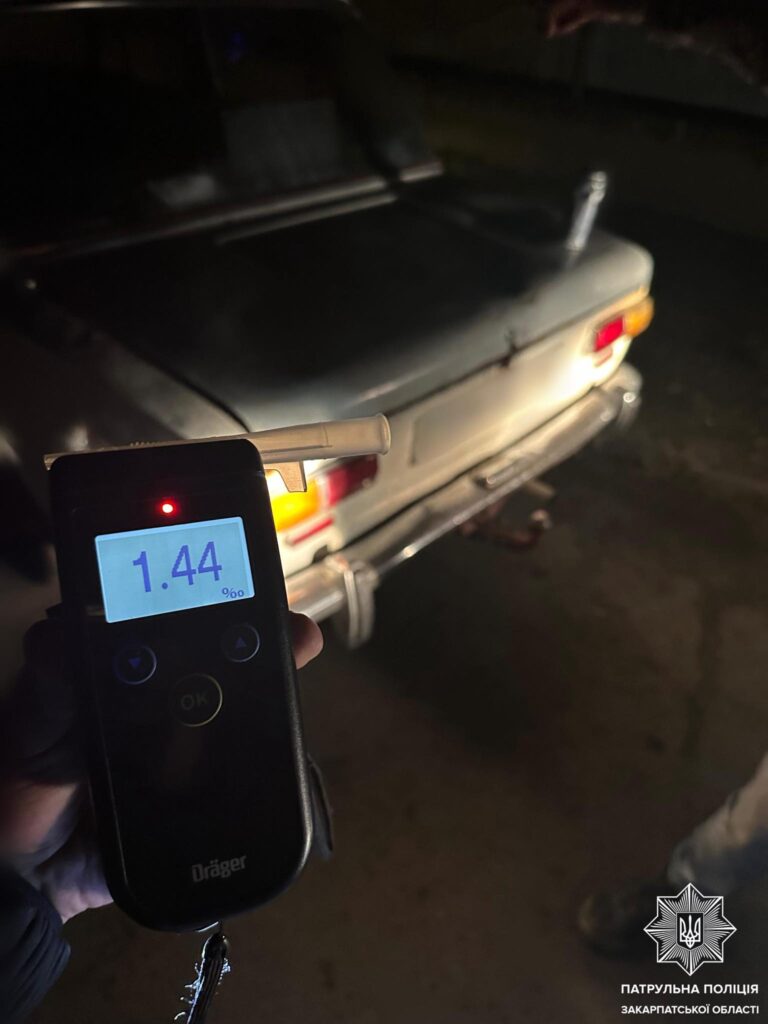 Керманичеві запропонували пройти огляд на стан сп’яніння на місці зупинки. Результат — 1,44‰ алкоголю у крові.
