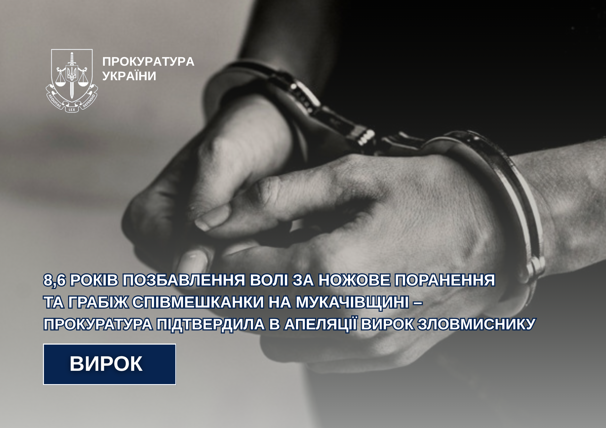 8,5 років ув’язнення за ножове поранення та грабіж співмешканки на Мукачівщині: апеляція залишила вирок без змін