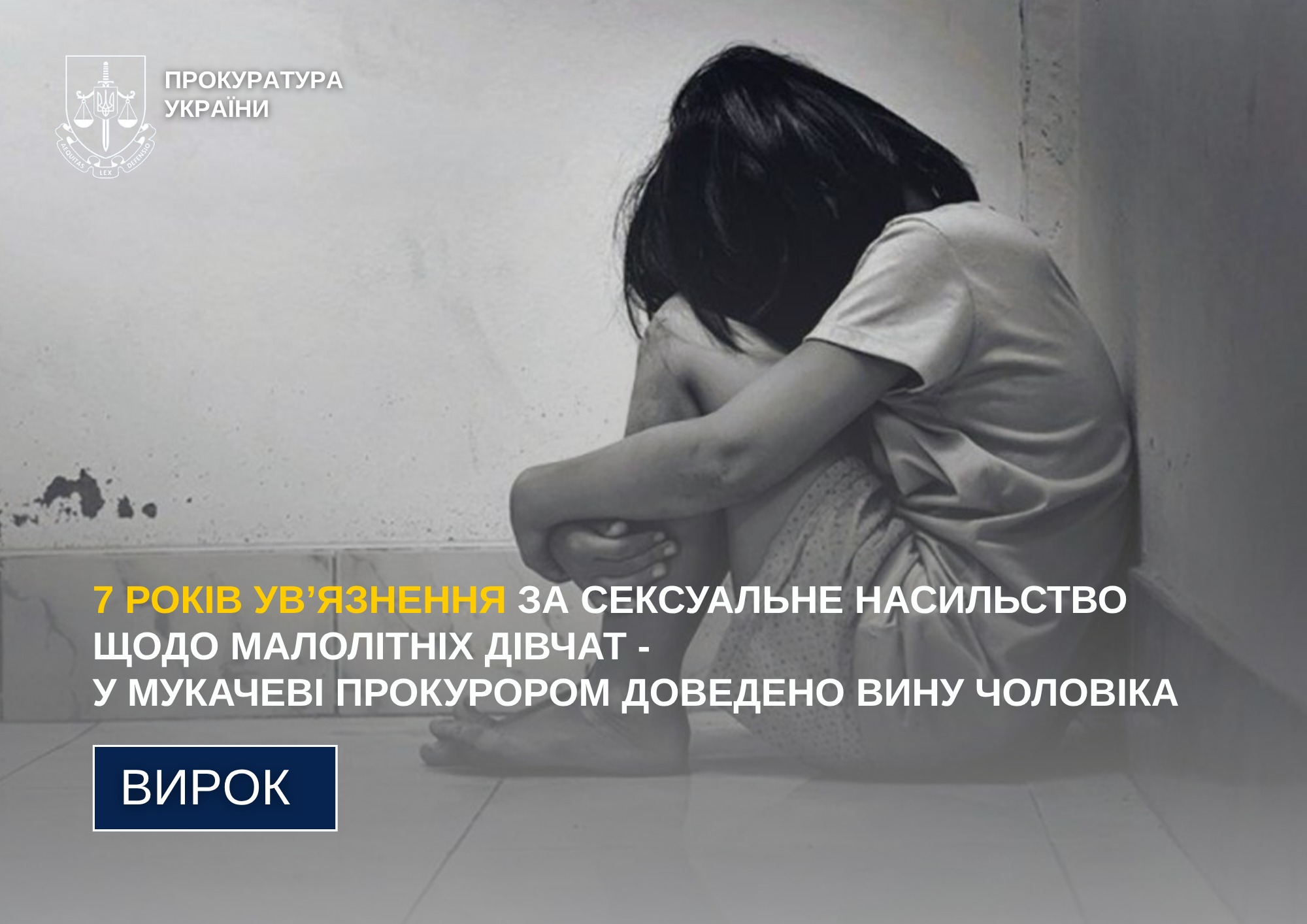 Вироком Мукачівського районного суду Закарпатської області чоловіка визнано винним у вчиненні сексуального насильства, вчиненому щодо малолітньої особи (ч. 4 ст.153 КК України). Йому призначено покарання у вигляді 7 років позбавлення волі. Очікується набрання вироком суду законної сили.