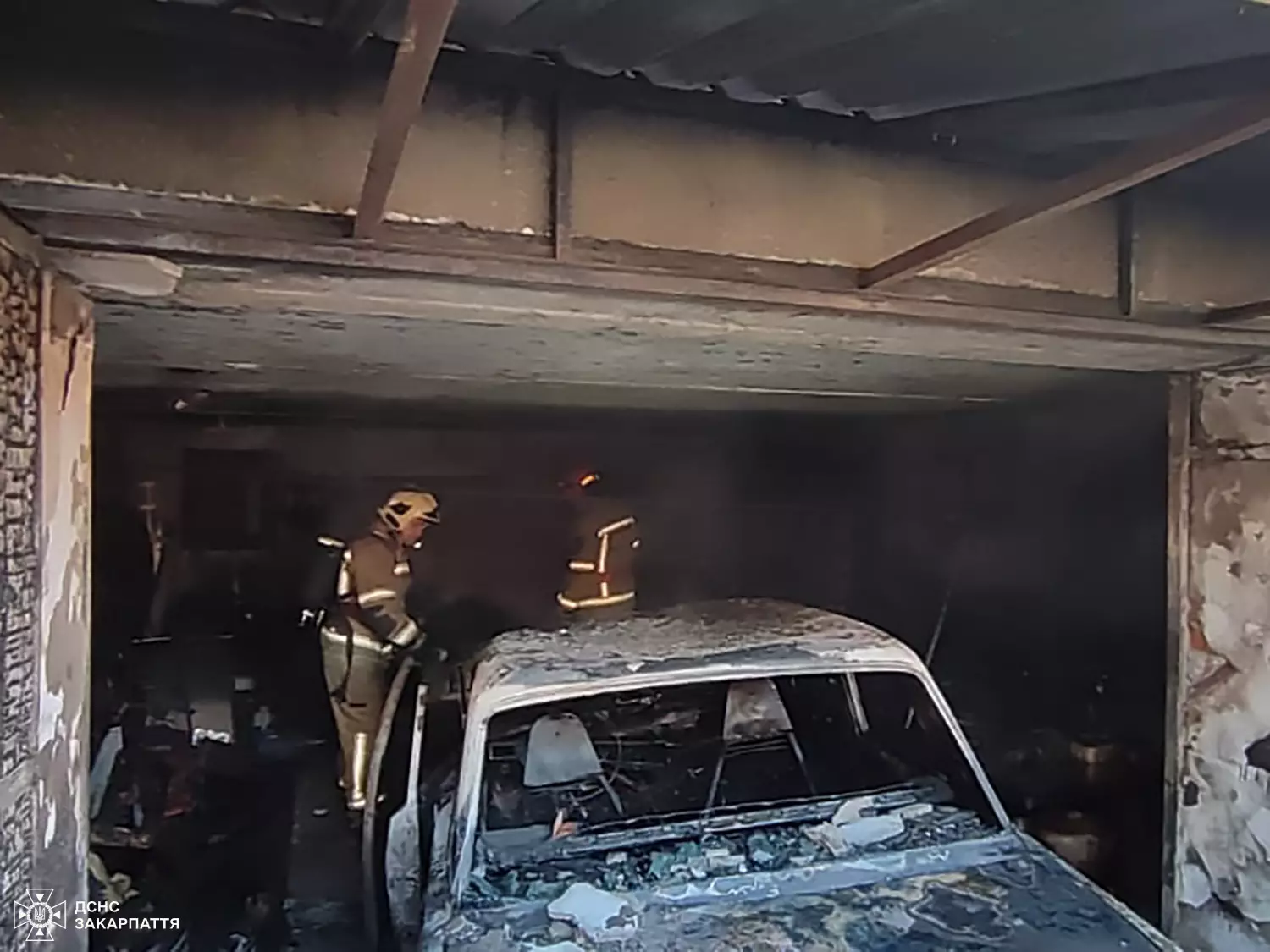 На місце події прибули вогнеборці 3-ї та 4-ї державних пожежно-рятувальних частин міста Ужгород. По прибуттю вони виявили відкрите полум’я в гаражі. Включившись в апарати захисту органів дихання та зору рятувальники провели розвідку пожежі та виявили тіло біля автомобіля марки ВАЗ 2105 виявили тіло 70-річного власника будівлі.