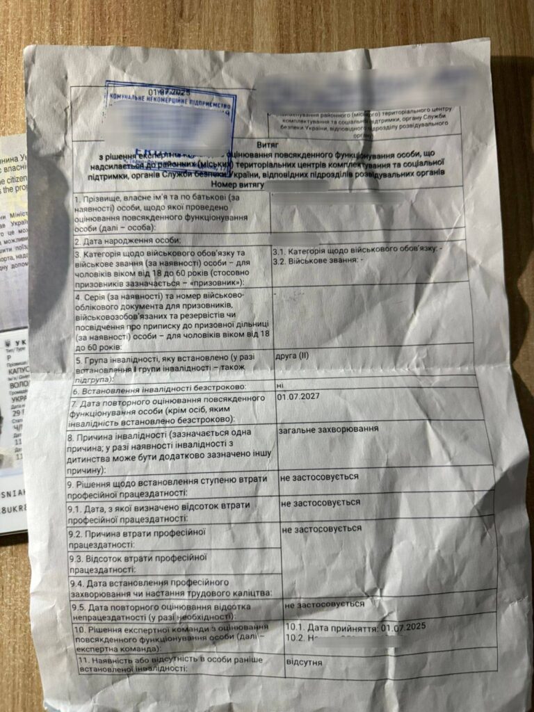 На контроль разом з паспортним документом він надав пенсійне посвідчення особи з інвалідністю та витяг з рішення експертної команди. Втім, у ході вивчення документів прикордонники встановили, що чоловік не міг отримати їх у законний спосіб. На момент одержання пенсійного посвідчення та під час зазначеного стаціонарного лікування він перебував за межами України. Також виявлено ще кілька ознак недійсності посвідчення та інших документів.