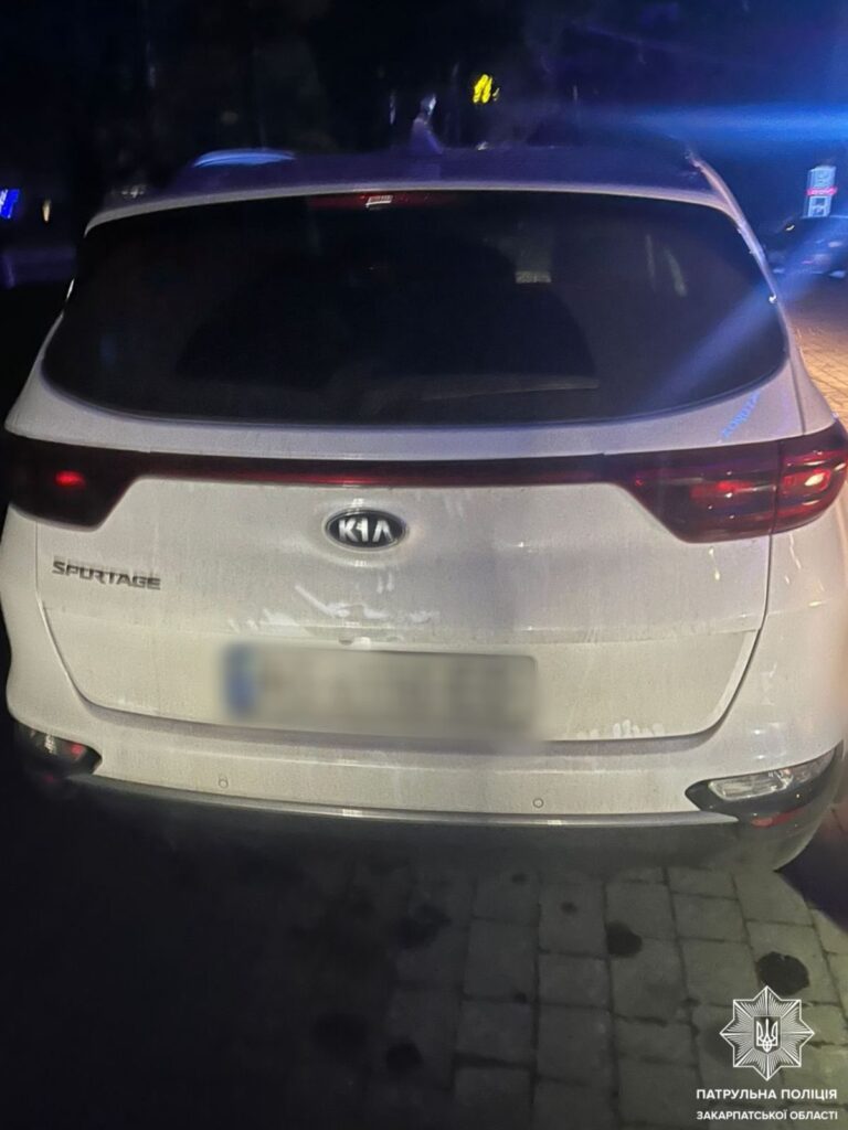 Уночі в Ужгороді на площі Богдана Хмельницького за порушення ПДР патрульні зупинили авто KIA.