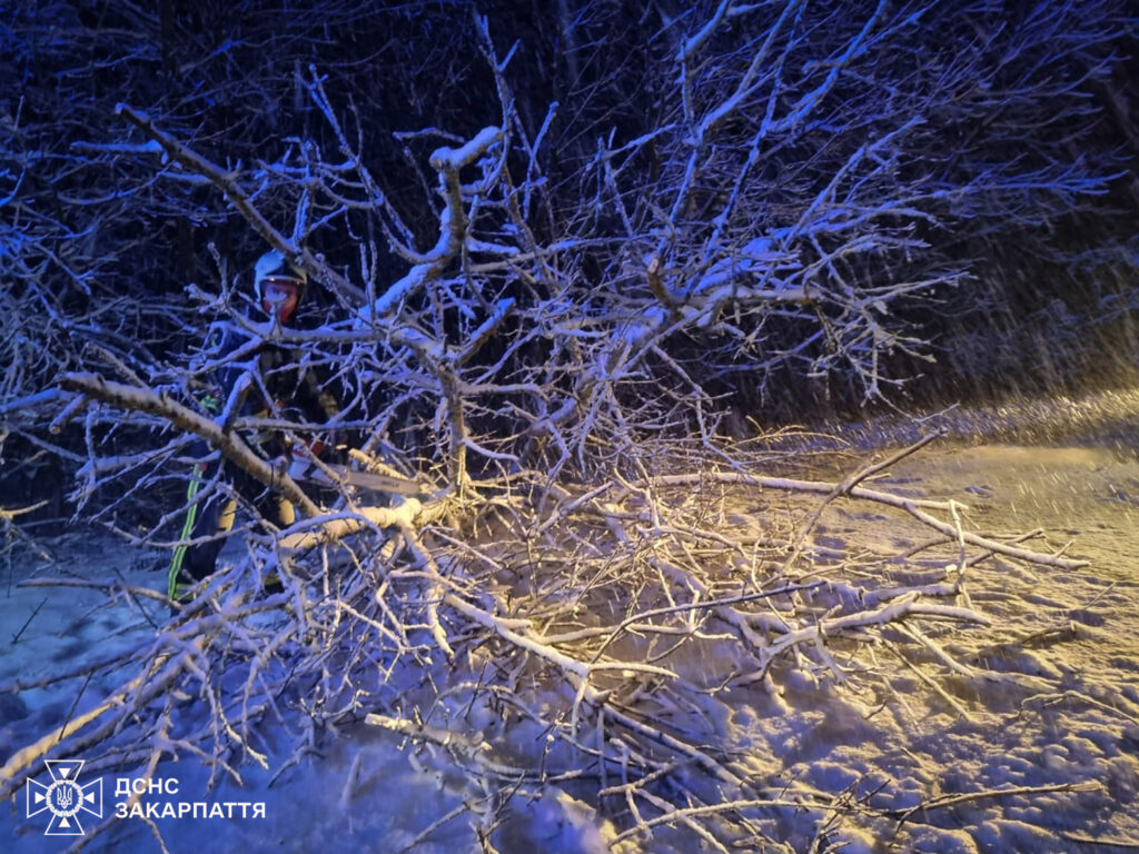 Так, у ніч на 8 січня, близько 03:00, у місті Виноградів на вулиці Копанській через перезволоженість та значну кількість снігу дерево впало на проїжджу частину автошляху та автомобіль Audi, який рухався у напрямку міста Хуст. Внаслідок цього транспортний засіб було пошкоджено, а рух на цій ділянці дороги тимчасово обмежено.