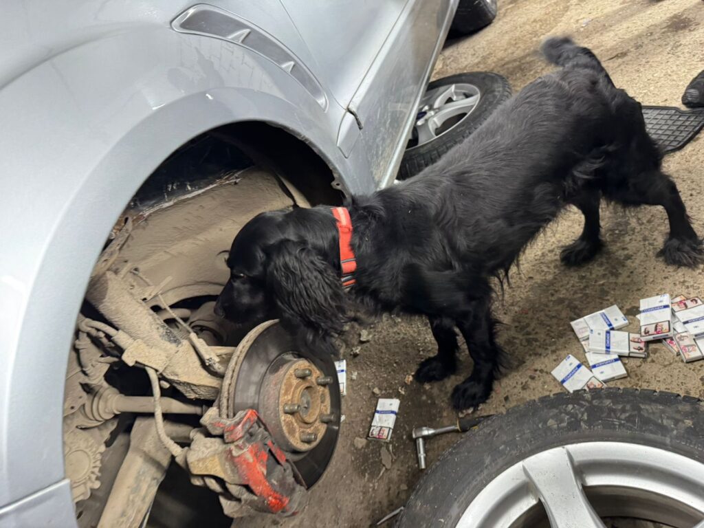 На кордоні з Угорщиною службовий пес митниці винюхав у днищі автомобіля кілька тайників з сигаретами