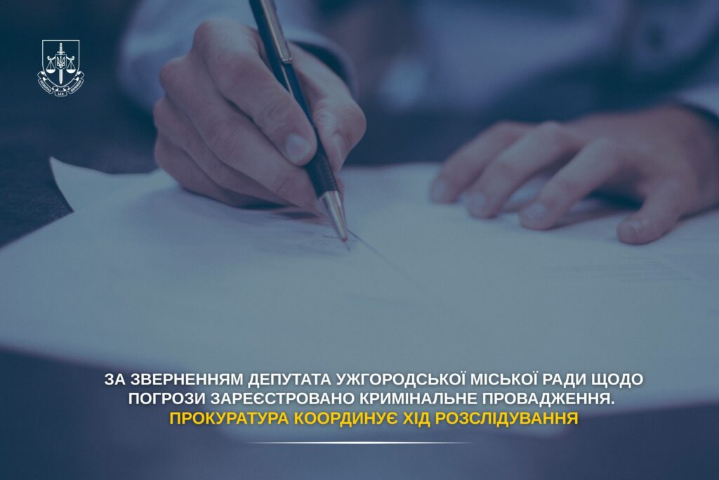 За зверненням депутата Ужгородської міської ради щодо погрози зареєстровано кримінальне провадження