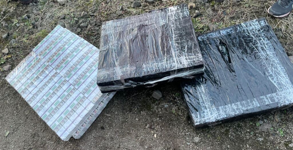 Відтак за допомогою ліхтарика, металевих щупів та лопат виявлено приховані 152 блоки сигарет «Compiment» без марок акцизного збору України. Для кращого маскування їх заздалегідь загорнули у чорну поліетиленову плівку та закопали глибоко під шаром окатишів.