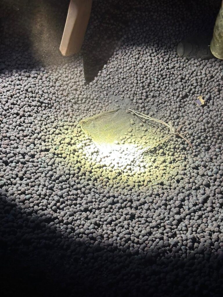 Для маскування контабандних тютюнових виробів ділки заздалегідь загорнули їх у чорну поліетиленову плівку, закопавши глибоко під шаром окатишів.