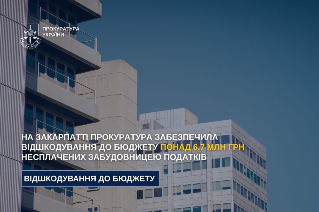 За процесуального керівництва Закарпатської обласної прокуратури забезпечено відшкодування до державного бюджету понад 6,7 млн грн податків, несплачених ужгородською забудовницею.