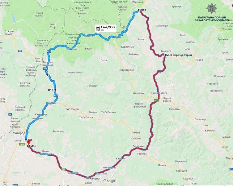 Додаємо карти можливих об’їздів, вони позначені синьою лінією.